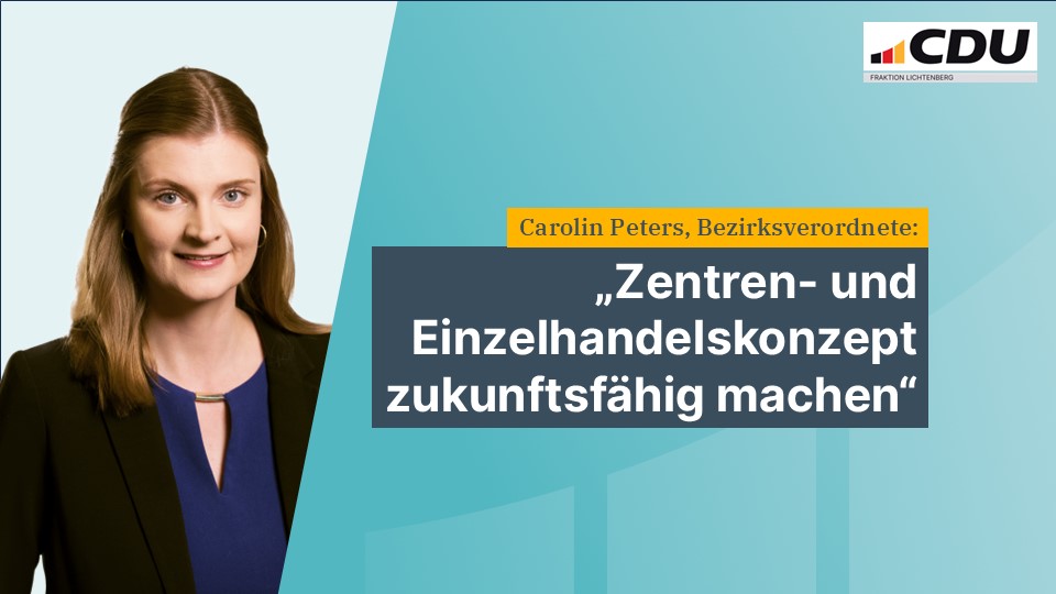 Die CDU-Fraktion Lichtenberg begrüßt die Arbeit am bezirklichen Zentren- und Einzelhandelskonzepts für den Bezirk. „Wir haben 2022 den entscheidenden Impuls gegeben, dieses Konzept grundlegend zu überarbeiten und an die Realität einer wachsenden Stadt anzupassen. Nach über drei Jahren wurde uns nun endlich durch Bezirksstadträtin Schuler ein Entwurf vorgelegt, der unsere Forderungen aufgreifen soll.“, erklärt Carolin Peters, wirtschaftspolitische Sprecherin der CDU-Fraktion. „Einige unserer Forderungen sind aufgenommen worden, doch es bleibt erheblicher Nachbesserungsbedarf.“